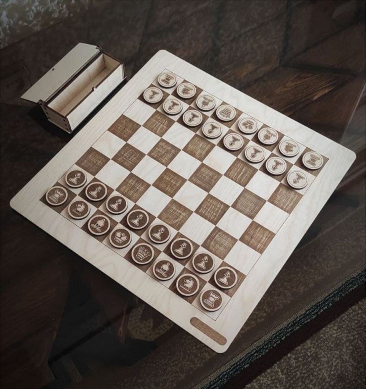 Echiquier gravé en bois. Prévoir livraison en 7 jours ouvrés*