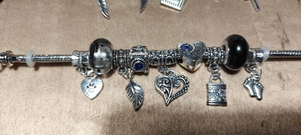 Bracelets pour femme, bracelets à maillons en acier inoxydable avec pendentifs en perles et cristaux bleus