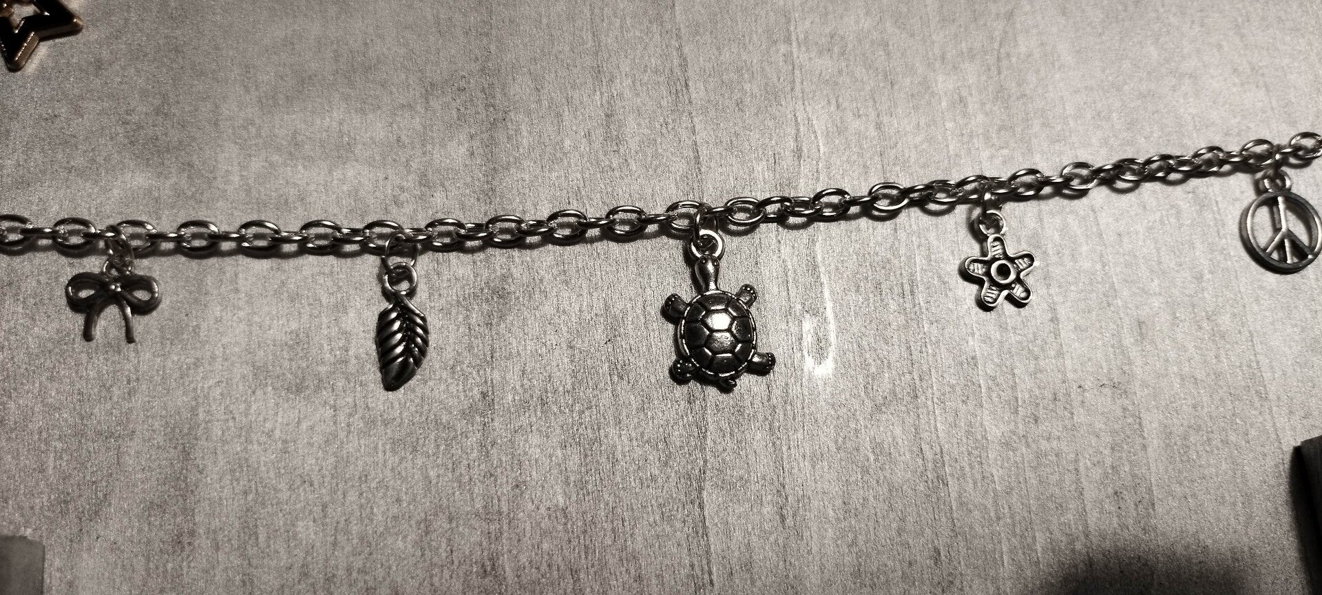 Collier pour femme, collier à maillons en acier inoxydable argenté avec pendentifs Charms
