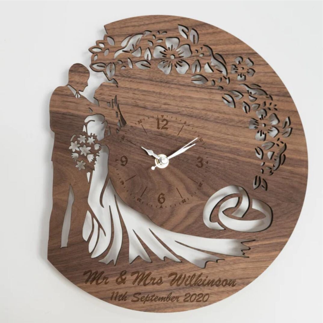 Horloge en bois, Diam. 300 mm personnalisable avec nom et date / avec mécanisme et piles fournies