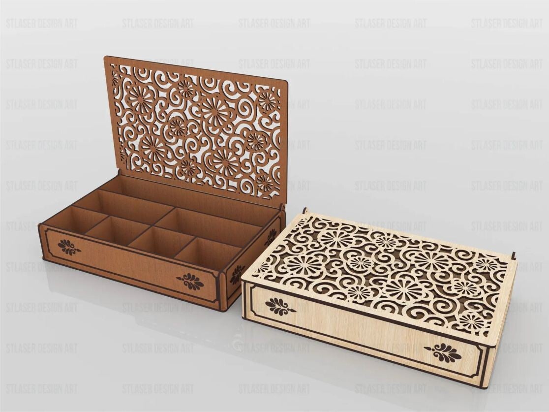 Coffre a bijoux 20 x 15 x 5 cm / Gravé ouvragé Peuplier ou Chêne doré