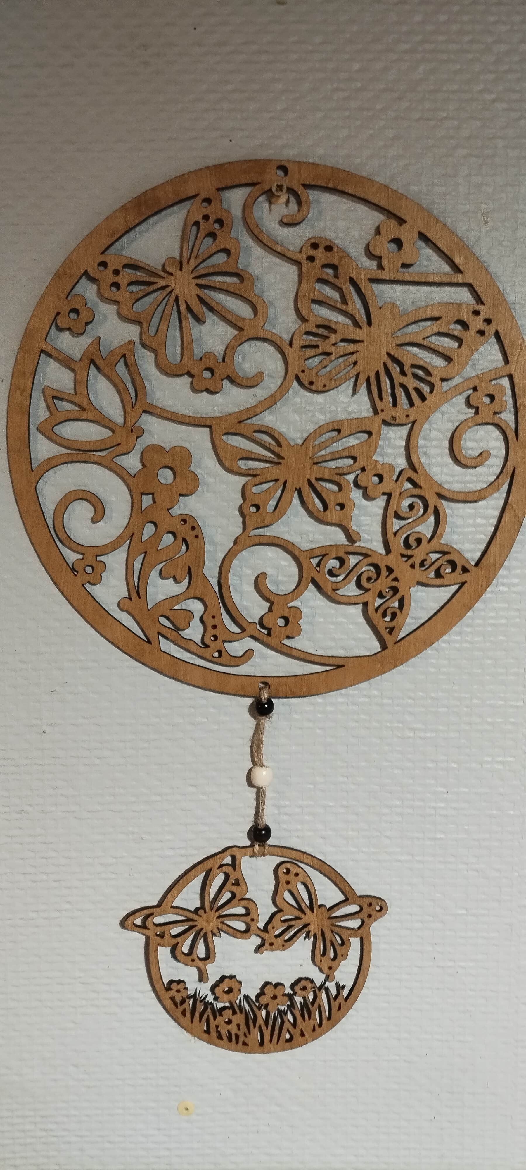 Mandala secoupé au laser en bois Diam 40 cm + insert 10 cm / teinte au choix